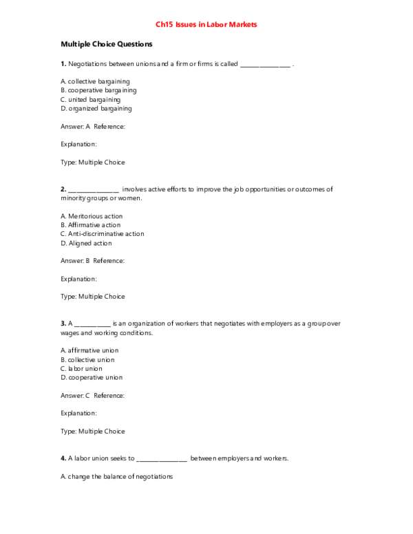 Doc Ch15 Issues In Labor Markets Multiple Choice Questions Rodrigo Marques Perdigao Academia Edu
