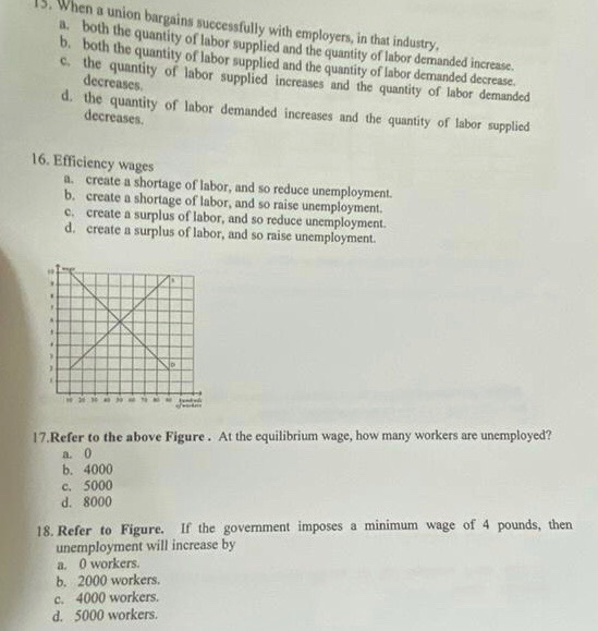 When a union bargains successfully with employers in that industry a. Both the quantity of labor supplied and the quantity of Inbor demanded increase b. When a union bargains successfully with employers in that industry the quantity of labor supplied increases and what is demanded decreases.